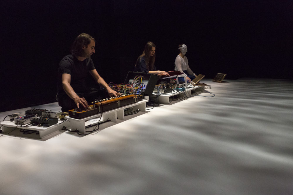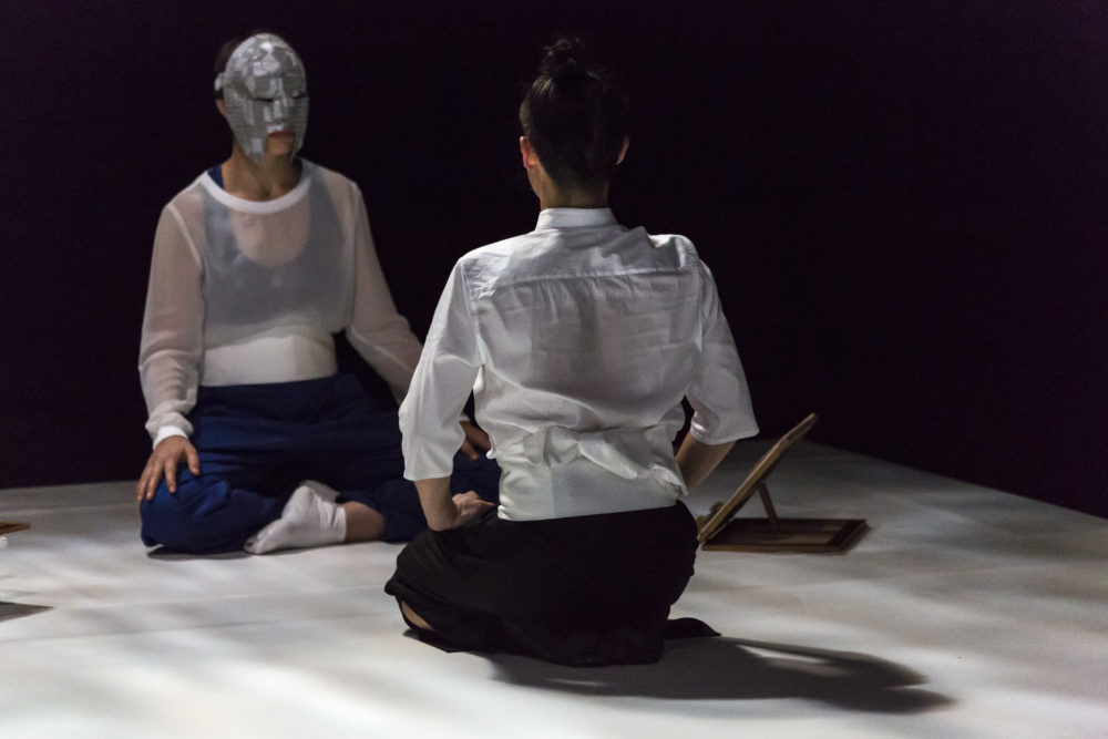 GIKOCHINA-SA / ぎこちなさ is a performance for two dancers-singers and two musicians, that rely on the observation of unintentional movements such as nervous tics and dyskinesia. The aim is to create a poetic language from the gestures that the body creates despite itself. The dyskinesia is here more than a symptom, it is an untamed expression of disorder. During a residency at the Villa Kujoyama in Japan, Mylène Benoit and the artistic team created a unique “language” through the confrontation between traditional Japanese performing arts and the vocabulary of unintentional movements.